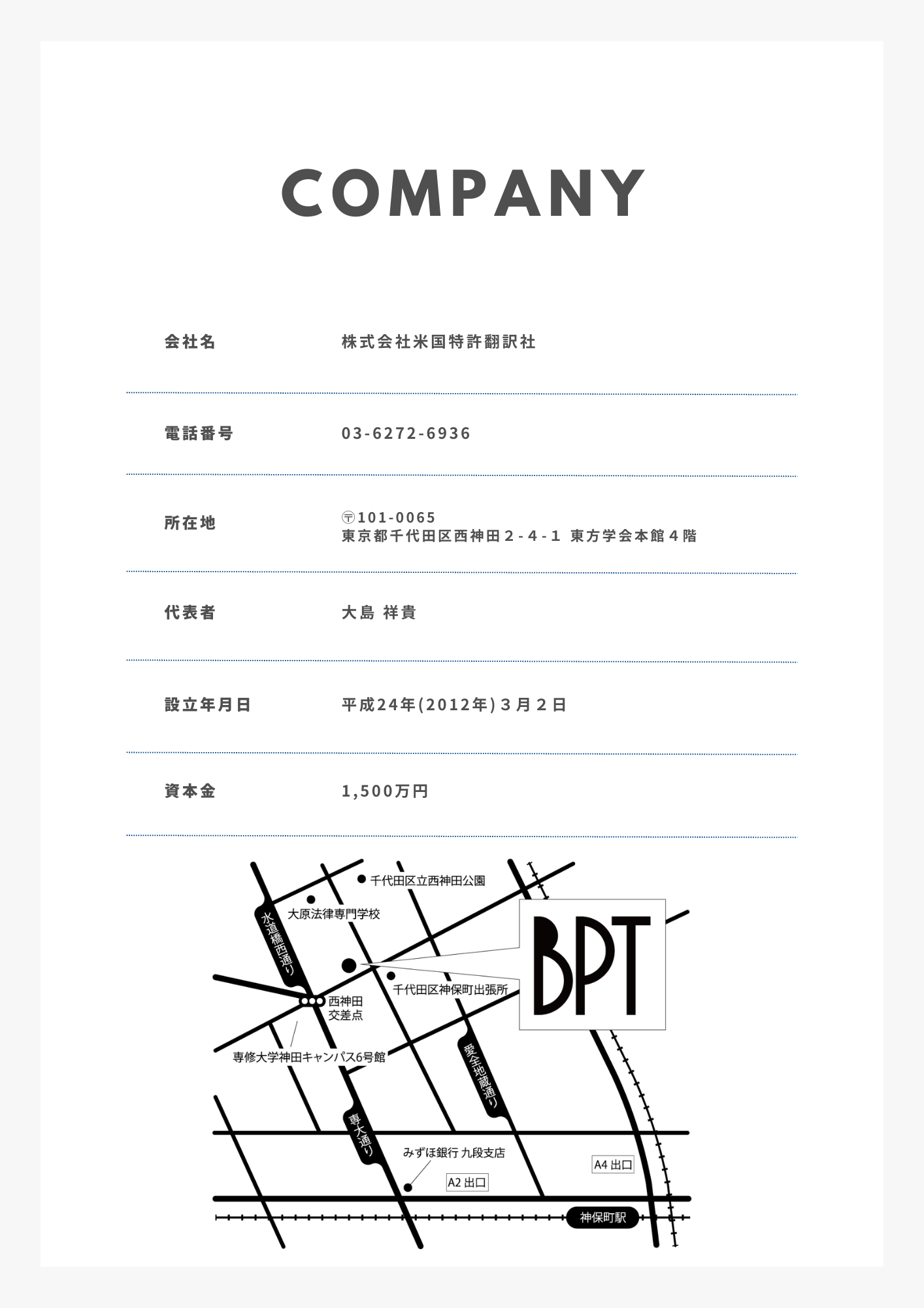 (株)米国特許翻訳社は、2012年の設立以来、特許翻訳サービスを中心に、企業知財部様や特許事務所様にご利用いただいてまいりました。